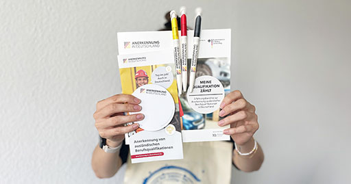 | Flyer, Kugelschreiber und weitere kostenfreie Materialien zur Anerkennung können Sie ganz einfach online über die Mediathek von „Anerkennung in Deutschland“ bestellen. |