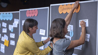 Arbeiten im erlernten Beruf ist ein wesentlicher Faktor für die erfolgreiche Integration in Deutschland – das ist keine neue Erkenntnis, wurde aber beim regen Austausch im Rahmen des Runden Tischs abermals sehr deutlich. Die anwesenden Migrantenorganisationen brachten ihre Impulse und Erwartungen konstruktiv in die Verfahren zur Berufsanerkennung ein. In einem ersten Block am Vormittag berichteten die Vertreterinnen und Vertreter über ihre Beobachtungen und formulierten Anregungen, wie die Prozesse rund um die Anerkennung besser laufen könnten. Den fachlichen Einstieg dazu bot ein Vortrag einer Mitarbeiterin des BIBB, die die neue Statistik und weitere Analysen aus dem Anerkennungsmonitoring vorstellte. Die bereitgestellten Pinnwände füllten sich zügig. Am Nachmittag widmete sich der Runde Tisch den Änderungen in der Fachkräfteeinwanderung ab 2024. Nach einer Einführung durch das BMBF tauschten die Anwesenden sich über die möglichen Auswirkungen auf die Berufsanerkennung aus.